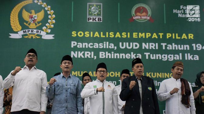 Ketum PKB Muhaimin Iskandar saat membuka Final Musabaqoh Kitab Kuning, Jakarta, Kamis (29/11). Dalam kesempatan itu juga dilakukan Sosialisasi Empat Pilar tentang Pancasila, UUD Tahun 1945, NKRI, dan Bhinneka Tunggal Ika. (Merdeka.com/Iqbal S Nugroho)