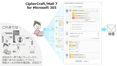 NTTテクノクロスでは、2003年よりメール誤送信防止サービスを提供しているが、今回は、Microsoft 365の環境で利用できる誤送信防止サービスのCipherCraft/Mail 7 for Microsoft 365を強化することにより、こうしたニーズに応えるとのこと。