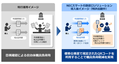 加えてNECでは、住民情報システムと連携する製品ラインアップを強化する。「NEC スマート行政窓口ソリューション」においては、自治体間における転出証明書情報のデジタル連携機能を追加するほか、マイナポータルと連携した、市民向け申請手続き案内サービス機能も提供するとした。このほか、新しいデータ駆動型行政を目指して、住民情報システム保有データを活用するソリューションも提供していくとのことだ。