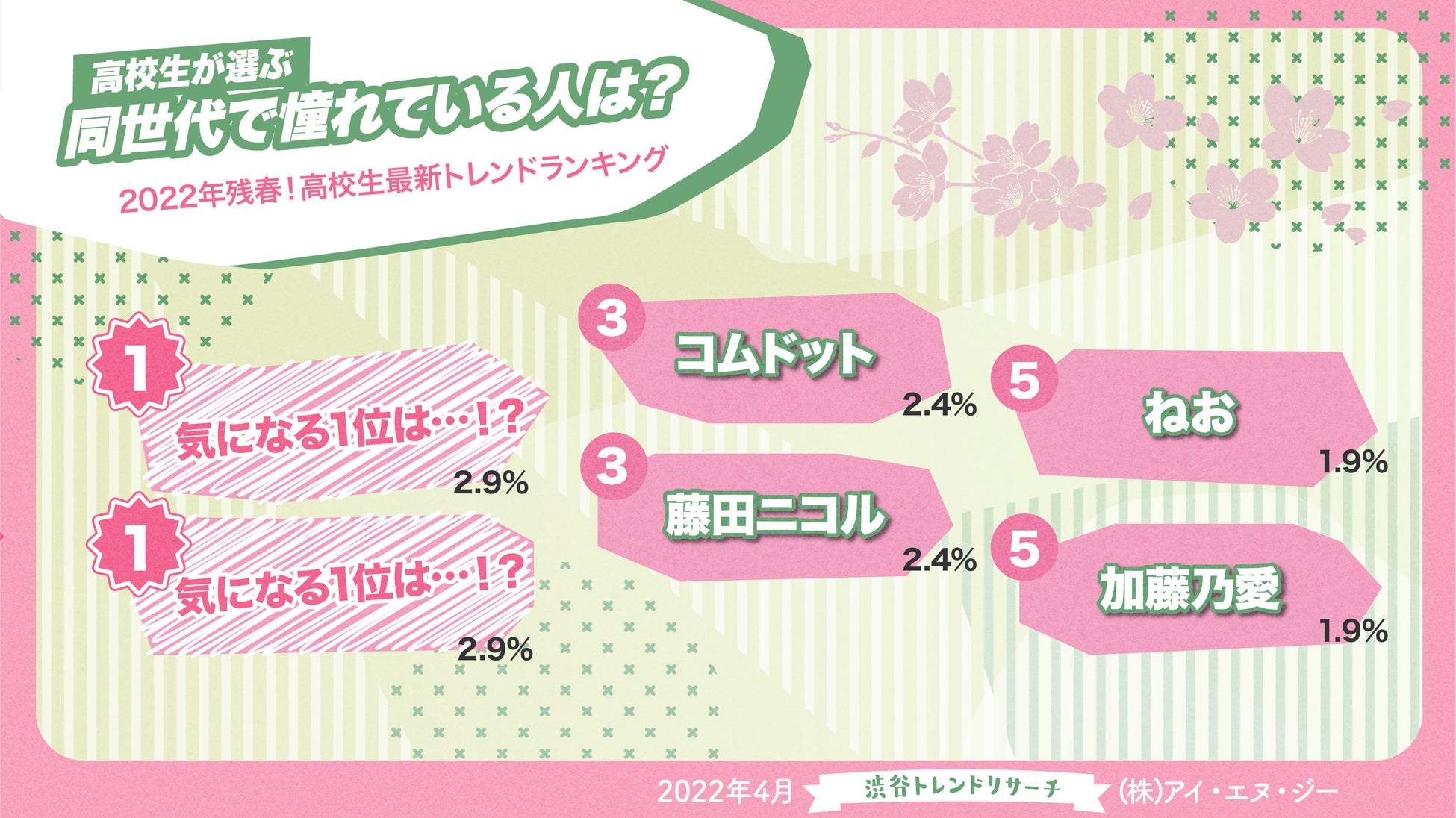 3位は、1位に引き続きコムドットがグループとしてランクイン。コメントでは「考え方が素敵(高3・女子)」「YouTubeだけじゃなく色々なこともやっているから(高2・男子)」とあり、好きなことをして生きる姿に一目を置いている様子が伺えました。